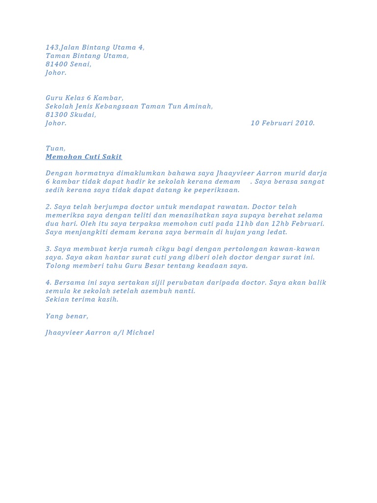 Surat rasmi memohon cuti sekolah ini penting untuk memastikan rekod berhenti sekolah kelak. Download contoh surat permohonan cuti kerja. Contoh surat izin cuti melahirkan yang baik. Untuk itu kami akan memberikan jawaban dan contohnya merupakan ketidakhadiran yang diajukan seorang karyawan ketika dalam kondisi sedang sakit. Documents similar to contoh surat memohon cuti sekolah. Surat rasmi memohon cuti sekolah ini penting dalam memastikan rekod berhenti sekolah pelajar nanti berada dalam keadaan yang baik dan tidak mempunyai rekod kesalahan ponteng sekolah. Sebelum membahas lebih lanjut, mari simak uraian singkat dibawah ini sob! 15+ contoh surat izin tidak masuk sekolah paling lengkap! Peristiwa kematian sendiri dapat dikatakan sebagai hal yang tidak dapat diprediksi dan merupakan kejadian duka. Demikian penjelasan mengenai cara membuat dan contoh surat izin sakit tidak masuk sekolah. Contoh surat rasmi tidak hadir ke sekolah cuti sakit. Contoh surat sakit ijin tak masuk sekolah dalam bentuk teks. Hal ini ditujukan agar tidak dikenakan sanksi di lingkup sekolah maupun di tempat anda bekerja.
